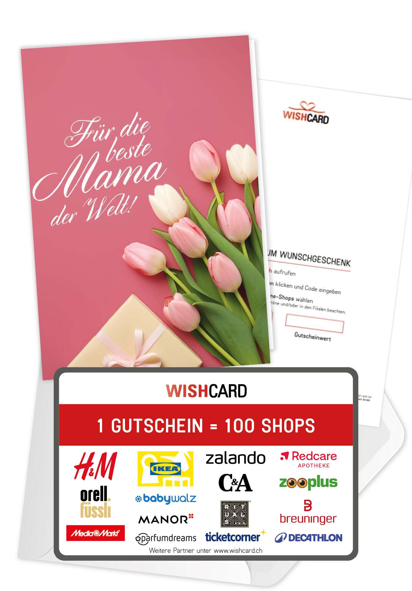 WISHCARD ist das perfekte Geschenk: Verschenke den Gutschein, der bei über 100 Online-Shops einlösbar ist – Von A wie Ankerkraut bis Z wie Zalando. Du liegst mit deinem Geschenk also immer richtig! WISHCARD ist in den Wertstufen 20, 30, 50, 100, 150 und 200 CHF erhältlich.